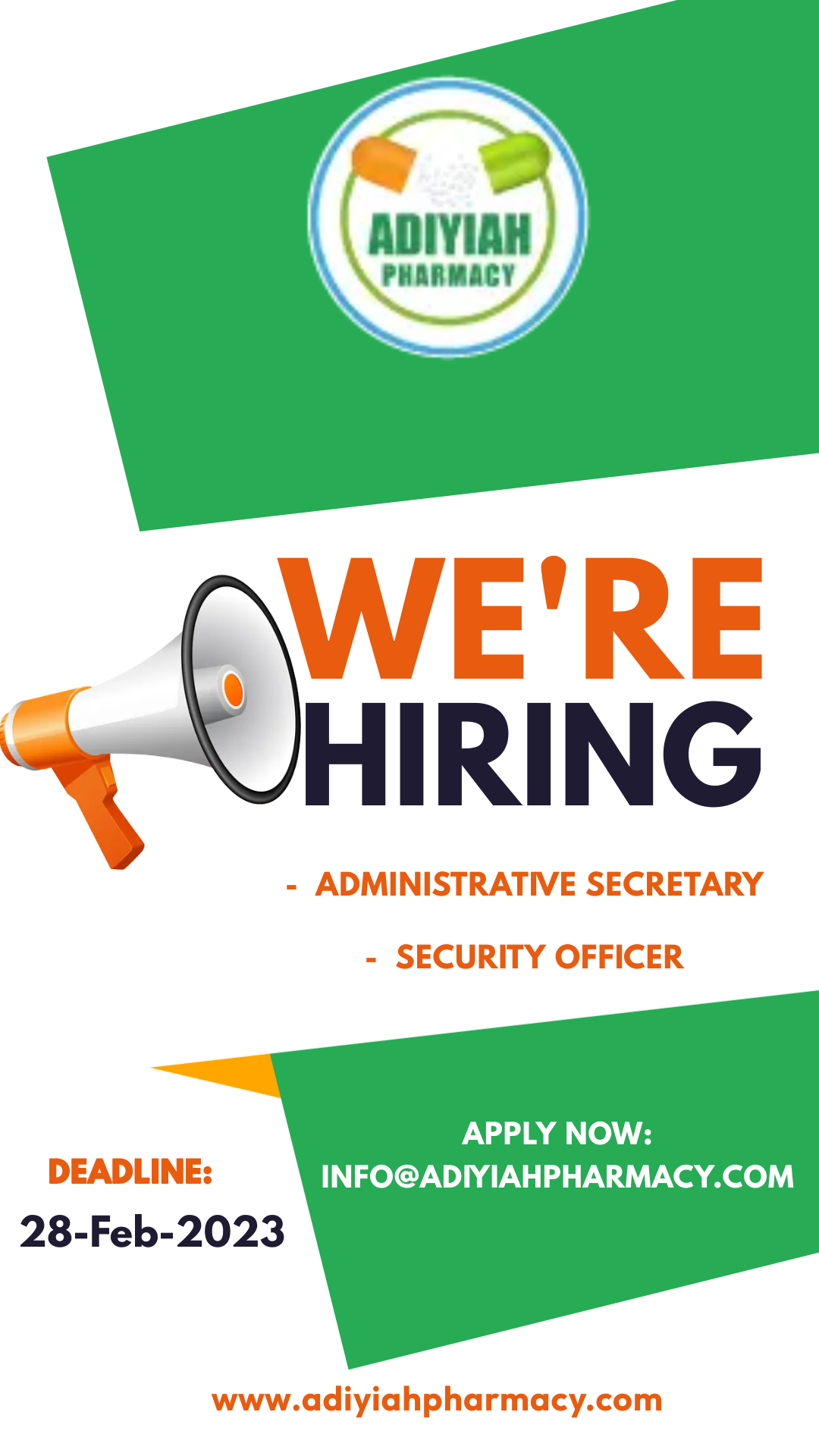 Send your CV via info@adiyiahpharmacy.com